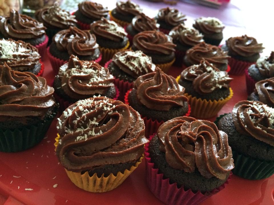 Coconut Chocolate Cake (or Cupcakes) with Creamy Chocolate Frosting